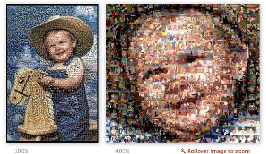 20" x 30" photo mosaic of our son, Wesley. The image is comprised of more than 2,600 tiles consisting of about 1,500 unique photos repeating no more than once.